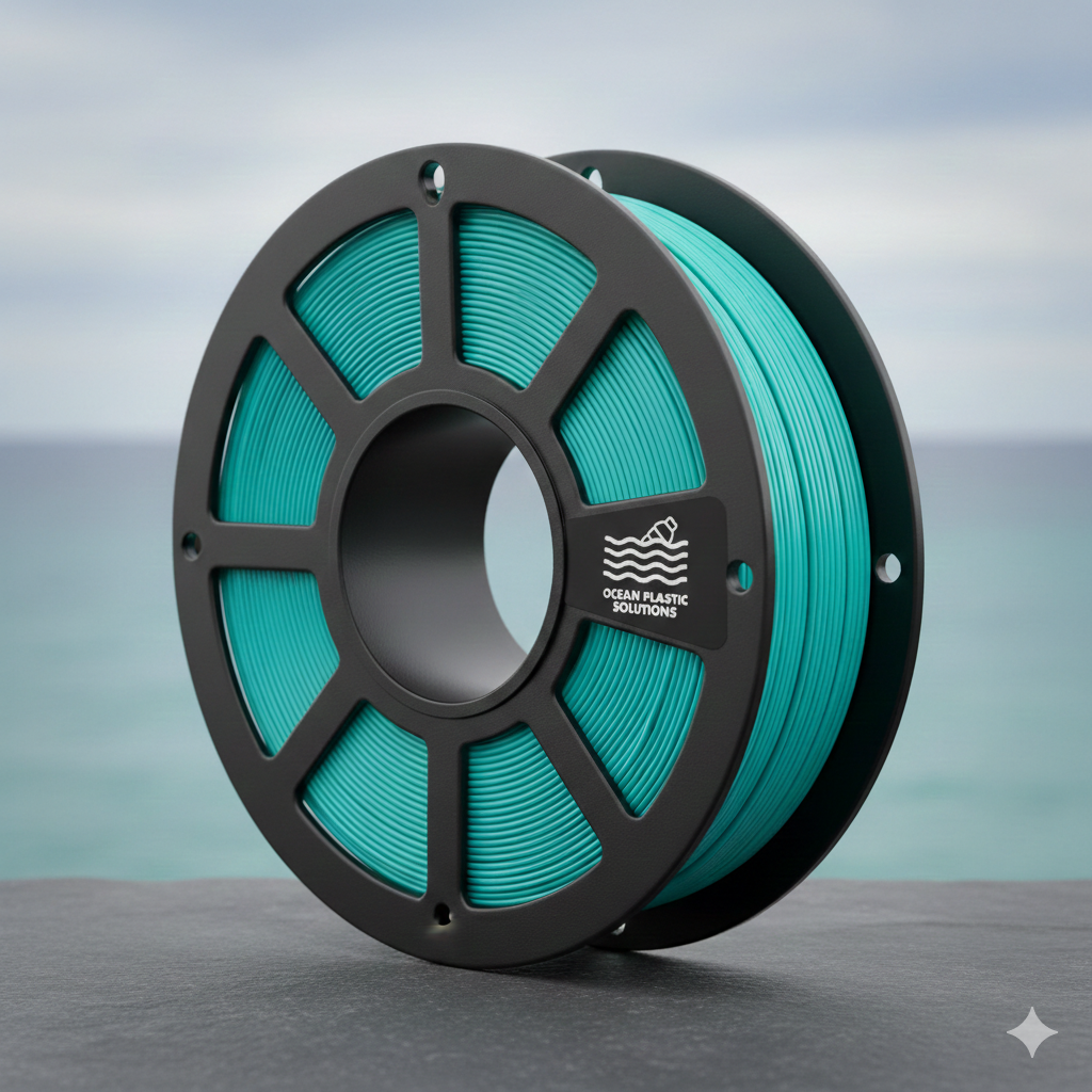 Filamento de alta calidad para impresión 3D, creado a partir de plástico marino recuperado.